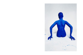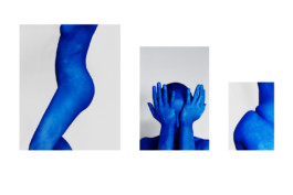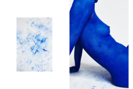 « Bleu » est une expérimentation visuelle sur le corps et le genre. Hommage aux Anthropométries d’Yves Klein (1960), elle questionne notre rapport à la sexualisation des corps féminins dans la société contemporaine. Le corps alors abstrait devient ici toile, pinceau, matière et paysage.